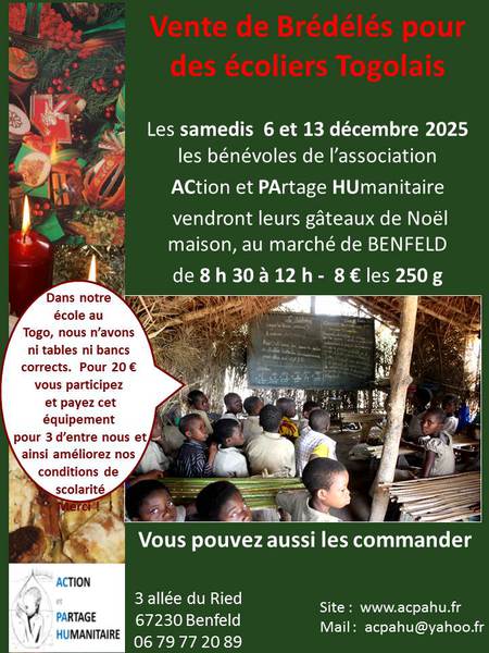 Comme l'année dernière, nos bénévoles vendront des bredeles et de la soupe étoilée afin de financer des puits au Togo !